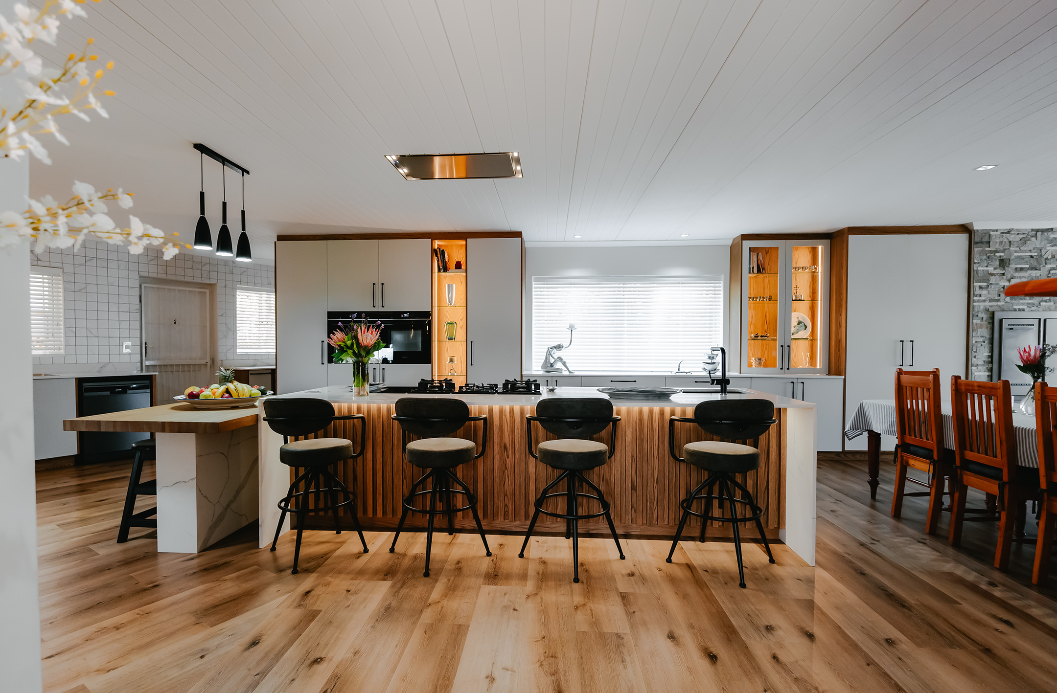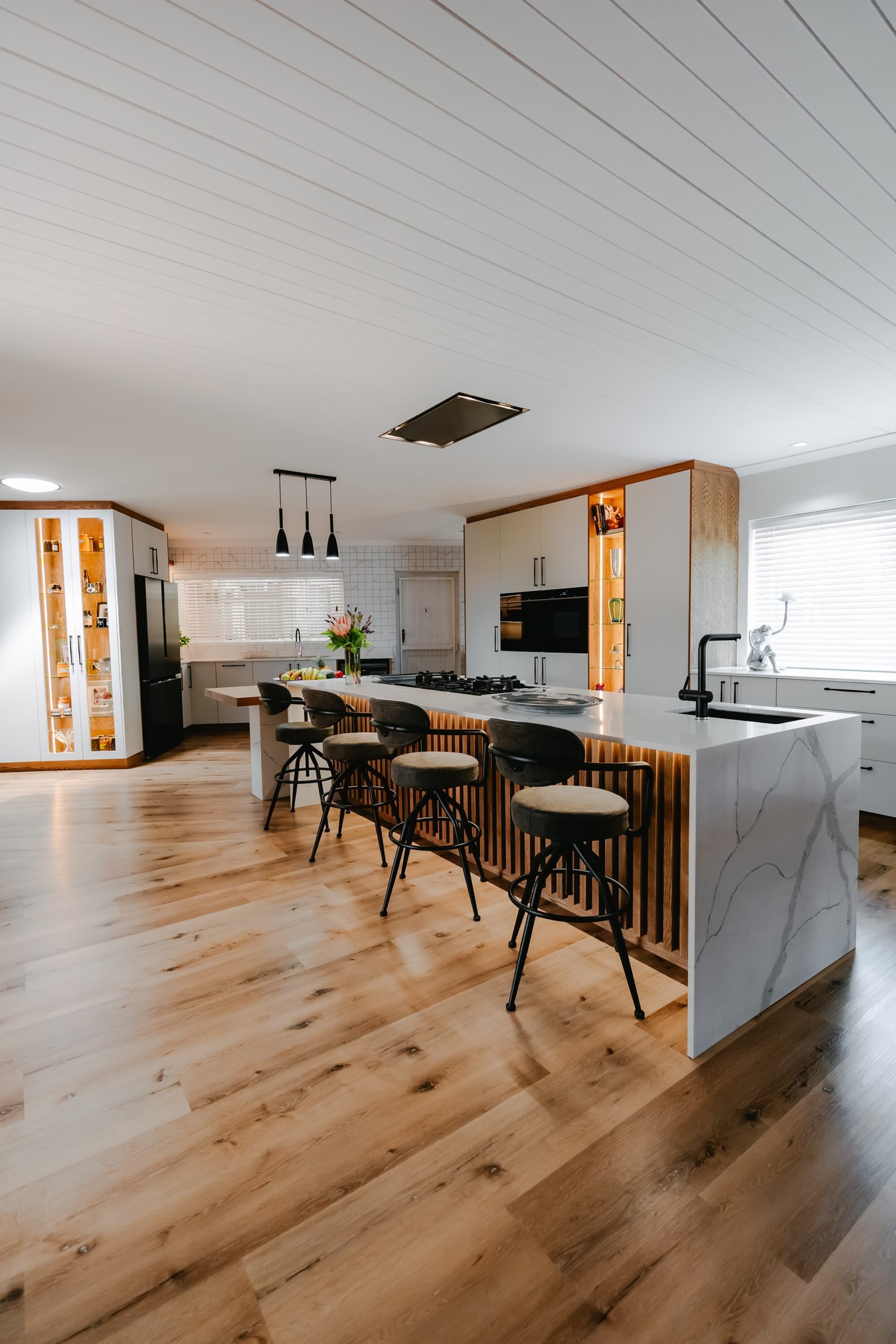Central to their approach is a commitment to craftsmanship and quality. By partnering with trusted suppliers known for exceptional service and superior products, Universal Kitchens ensures that every project meets the highest standards. Their offering includes a wide range of premium finishes — from sleek satin and high-gloss wraps to natural veneer options such as JaxWax and Monocoat, alongside Duco and flat-press components. Materials sourced from leading brands like SenoSA, Niemann SA and PG Bison further elevate each design, resulting in spaces that are both contemporary and timeless.