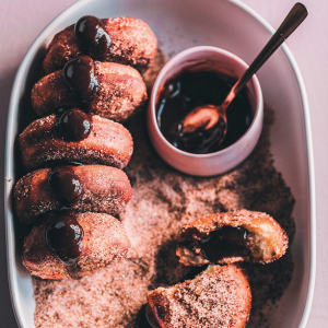 Served with a decadent coffee-infused ganache sauce, these vetkoek twists are a great way to treat yourself.
