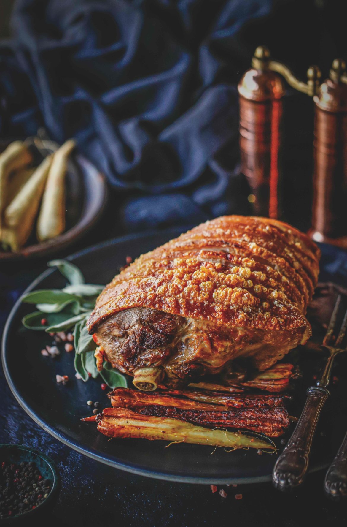 Golden roast leg of pork