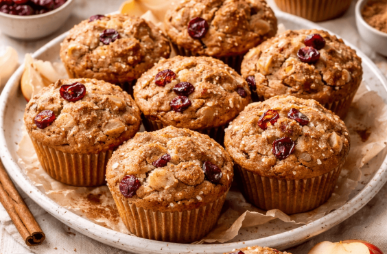 Vegan apple, cinnamon and cranberry muffins